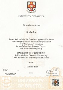 | 布里斯托大学(QS 54)工程学硕士 (在读) 机器人 专 业 课 程 : 机器人系统、机械臂测算、机器人人工智能、人机交互、机器视觉、机器人学习、远程操作 布里斯托大学(QS 54)工程学学士 (荣誉) 电气与电子工程 专 业 课 程 : 数字电路与系统、嵌入式与实时系统、线性电路、 C语言、 Python、 VHDL、电子学、网络协议原理、功率电子学、机器与驱动技术、超大规模集成电路(VLSI)设计、通信、信号与系统 |